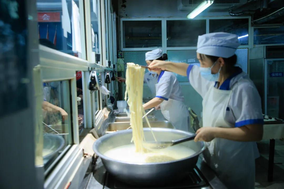 經(jīng)濟(jì)實(shí)惠。食堂以低于成本的價(jià)格向職工提供三餐,午餐中三肉兩素5元能吃飽吃好,鹵雞腿4元1個(gè),獅子頭2元1個(gè),黃燜雞塊、紅燒帶魚等5元1份,面條/饸饹面2.5元1份;早餐、晚餐2元能吃飽吃好,雞蛋0.5元1個(gè),手抓餅1元1個(gè),雞蛋灌餅含1雞蛋1.5元1個(gè),肉夾饃3元1個(gè)。
