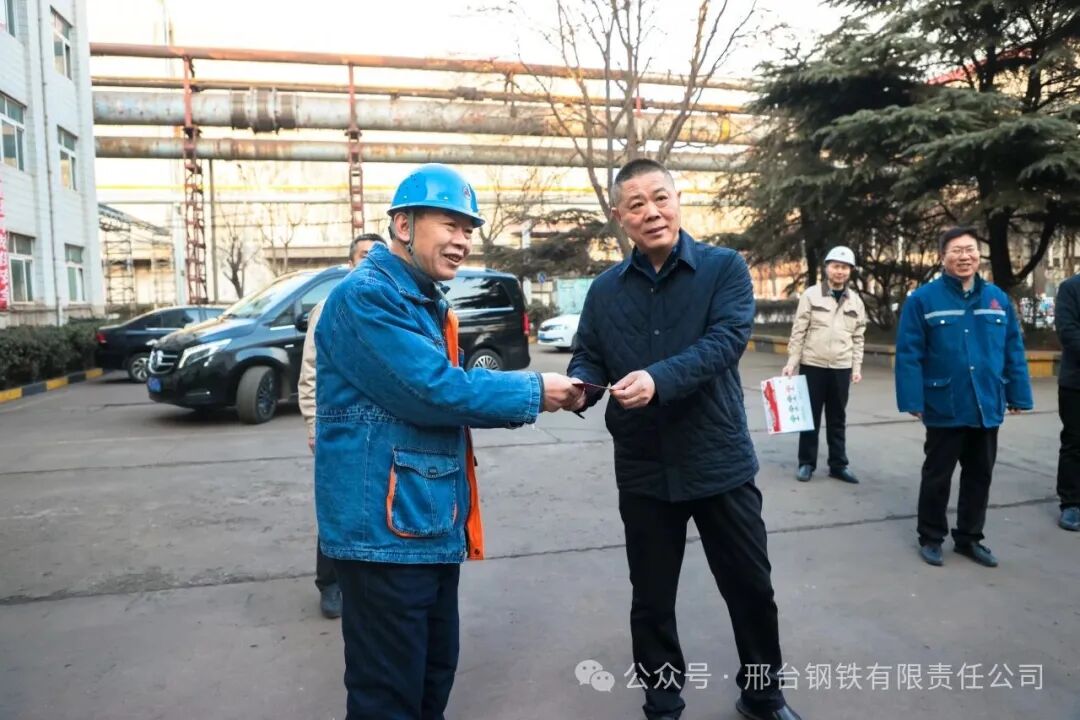 慰問(wèn)中,張育明董事長(zhǎng)對(duì)大家在過(guò)去一年里為邢鋼老廠區(qū)穩(wěn)定和新廠區(qū)建設(shè)付出的艱辛努力表示衷心感謝。他表示,鋼鐵是工業(yè)的脊梁,一線是企業(yè)的根基。在萬(wàn)家團(tuán)圓的時(shí)刻,大家用堅(jiān)守詮釋責(zé)任,用奉獻(xiàn)點(diǎn)亮新春,生動(dòng)展現(xiàn)了邢鋼人“鐵一般擔(dān)當(dāng)”的精神風(fēng)貌。